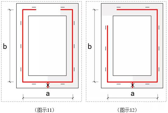 3、結論:由圖示可知,對于口形走道,依風管設置方式不同,原則2的計算長度可能大于原則1,在圖示11中,防煙分區的長邊長度為a+b,在圖示12中,防煙分區的長邊長度為1.5a+b,在圖示13中,防煙分區的長邊長度為2a+2b(這是最不利的極限情況,相當于第一章觀點1的計算長度)。