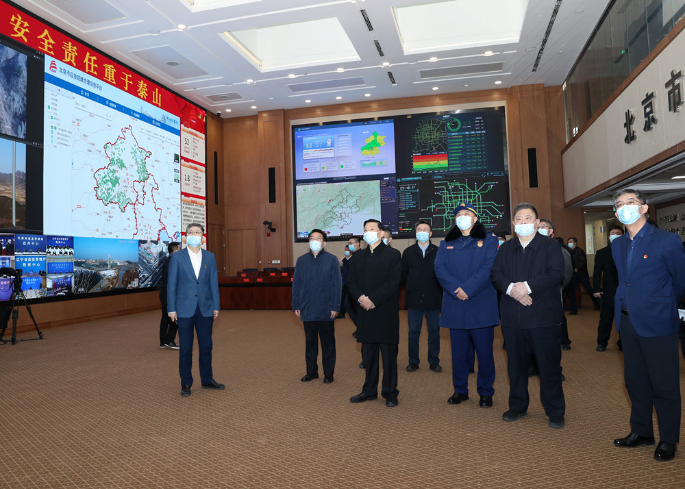 位于北京市通州區的市應急指揮中心指揮大廳大屏上,實時顯示著人員密集場所、森林防火等現場畫面。王祥喜在指揮大廳仔細詢問春節期間重要景區客流量情況,聽取北京市應急管理工作匯報,對北京市應急管理系統取得的成績表示充分肯定,對北京市委、市政府一直以來關心支持應急管理工作表示衷心感謝。他強調,北京人流物流車流聚集,城市安全運行管理難度大,各種風險隱患交織疊加,確保首都人民平平安安過年,是對北京市應急管理系統的嚴峻考驗,要發揚優良作風,繃緊神經、枕戈待旦,時刻保持應急狀態,隱患處置在早,風險防范在先,堅決當好首都人民的“守夜人”,在服務首都高質量發展中作出新的更大貢獻。