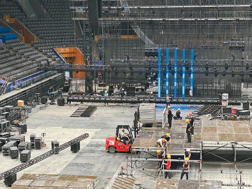 在國家體育館,一場文藝演出的舞臺正在搭建。
