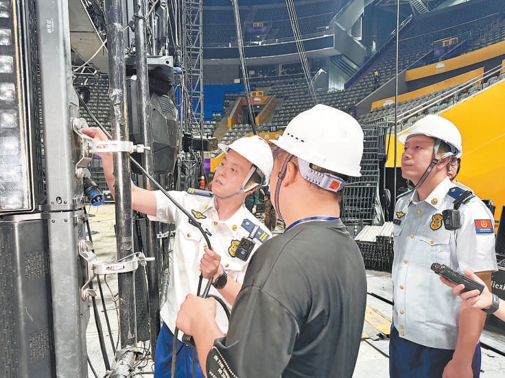 昨天下午,在國家體育館,一場文藝演出的舞臺已現雛形。此次活動的主承辦方和搭建方都是江蘇企業,第一次來京舉辦文藝演出,對一些消防要求擔心把握不準確,因此連同場館方,向朝陽區消防救援支隊“求助”。該支隊重點保衛處處長隋興亮和同事到場指導。