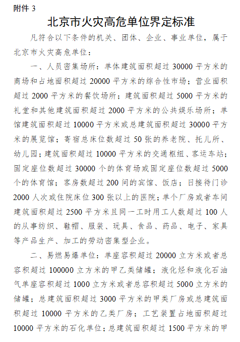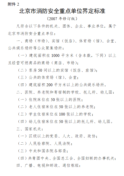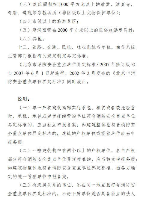 為進一步加強消防安全重點單位及火災高危單位管理,有效預防和減少火災事故發生,依據《中華人民共和國消防法》《機關、團體、企業、事業單位消防安全管理規定》《北京市消防安全重點單位界定標準》《北京市火災高危單位消防安全管理規定》等法律規定,現啟動2023年度消防安全重點單位及火災高危單位調整界定工作,請各單位參考界定標準認真自評申報,并按照現行消防法律法規要求,進一步強化消防安全主體責任。有關事項通告如下: