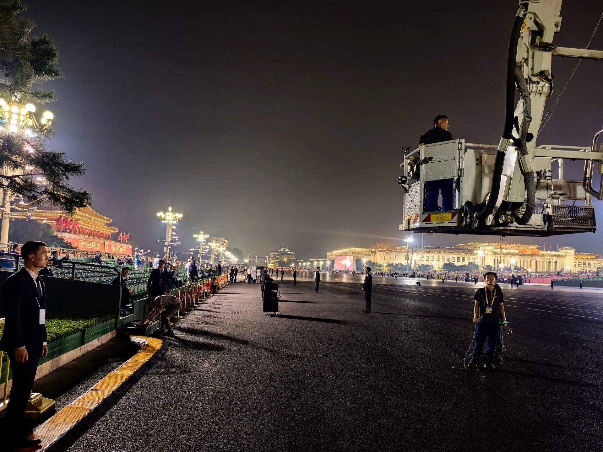 “我們的點(diǎn)位在中山公園南門前,不僅車身距離閱兵方隊‘零距離’,升空后的工作斗就在長安街上空,點(diǎn)位極為重要。”賈孝龍說,在前三次演練中,他們按照新華社記者的要求,不斷調(diào)整云梯車旋轉(zhuǎn)與伸展的角度,只為盡可能靠近長安街中線,確保最完美的拍攝效果。