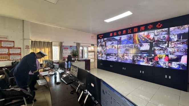 此外,檢查人員還對是潭柘寺是否存在違規用火用電,是否存在電動自行車違規停放和充電情況進行了檢查,并拉動單位微型消防站,檢驗消防設施聯動和控制室人員“四快”處置程序落實情況,隨機抽查員工消防安全知識掌握和“一警六員”實操實訓情況。